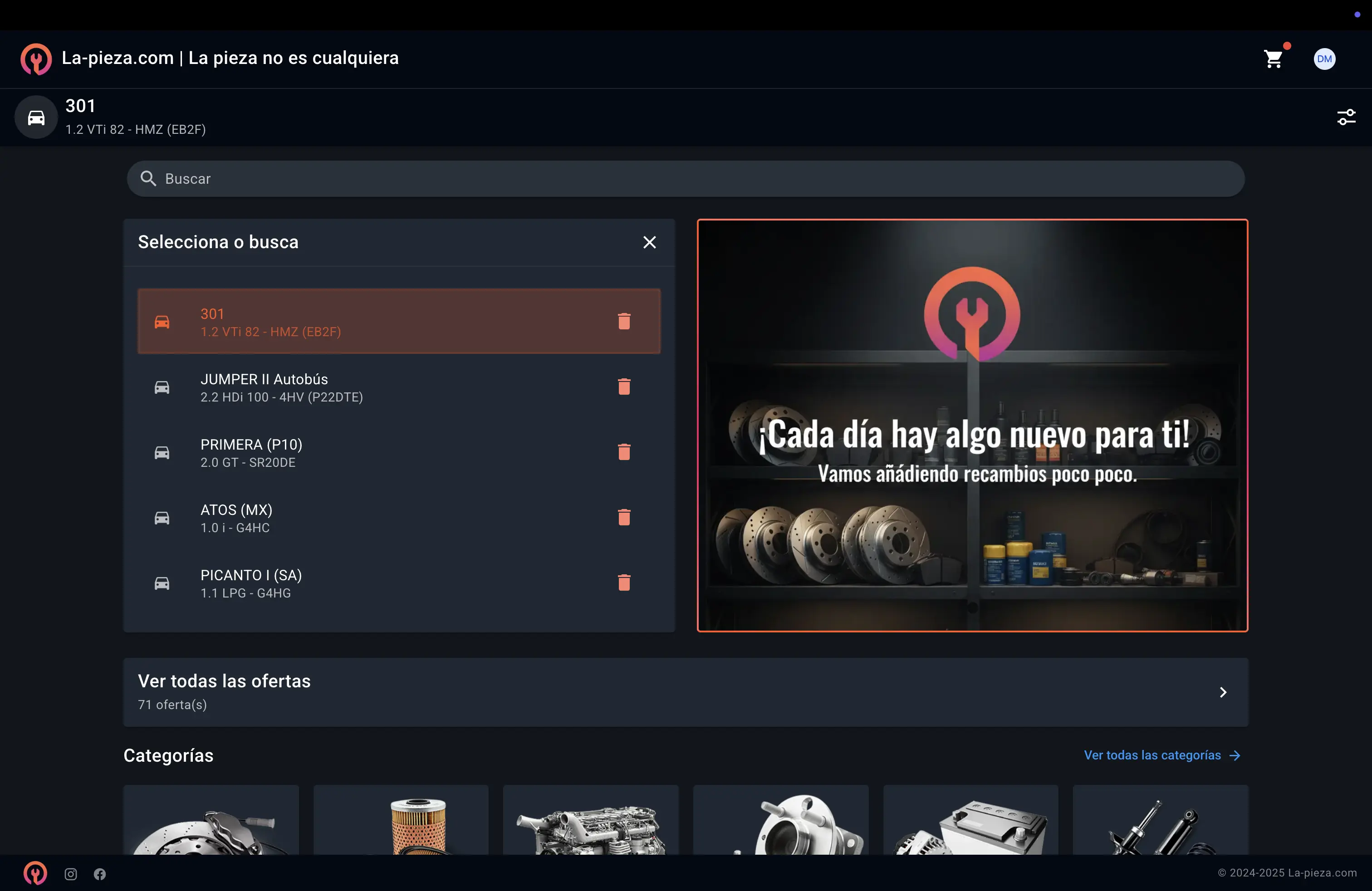 Plataforma diseñada para que encontrar piezas de recambio sea una tarea simple, rápida y confiable. Que facilita al cliente encontrar en un solo lugar piezas de recambios a diferentes precios de forma rápida y segura.