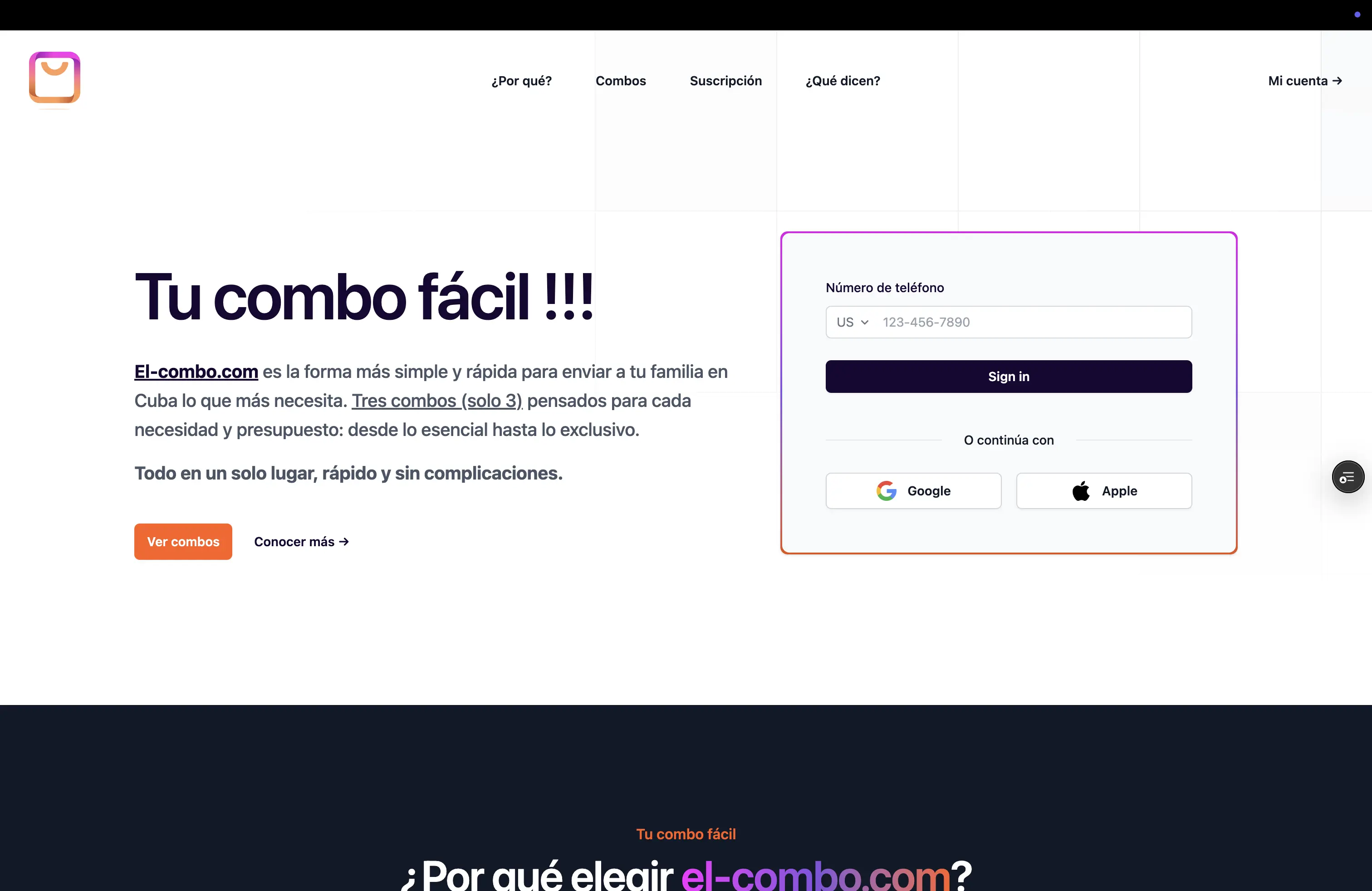 El-combo.com es una tienda para de la forma más simple y rápida para enviar a tu familia lo que más necesita. Presenta 3 combos de comida pensados para cada necesidad y presupuesto.